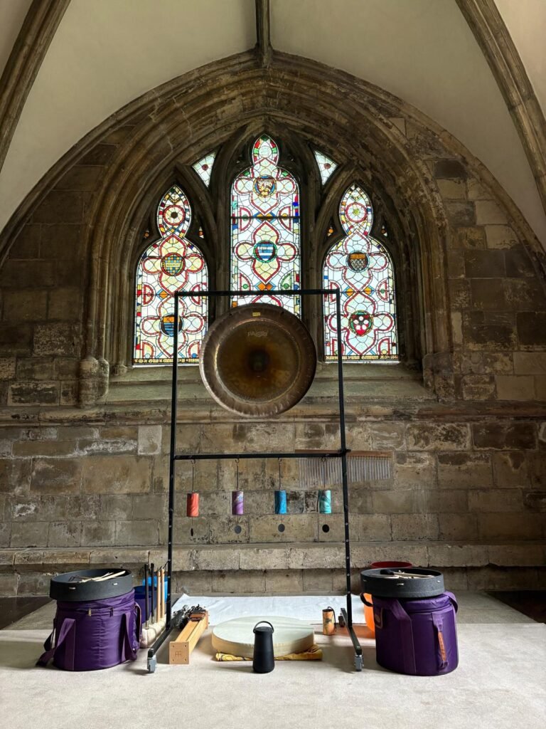 The sound bath lasts approximately one hour, with a possibility of a slight overrun.